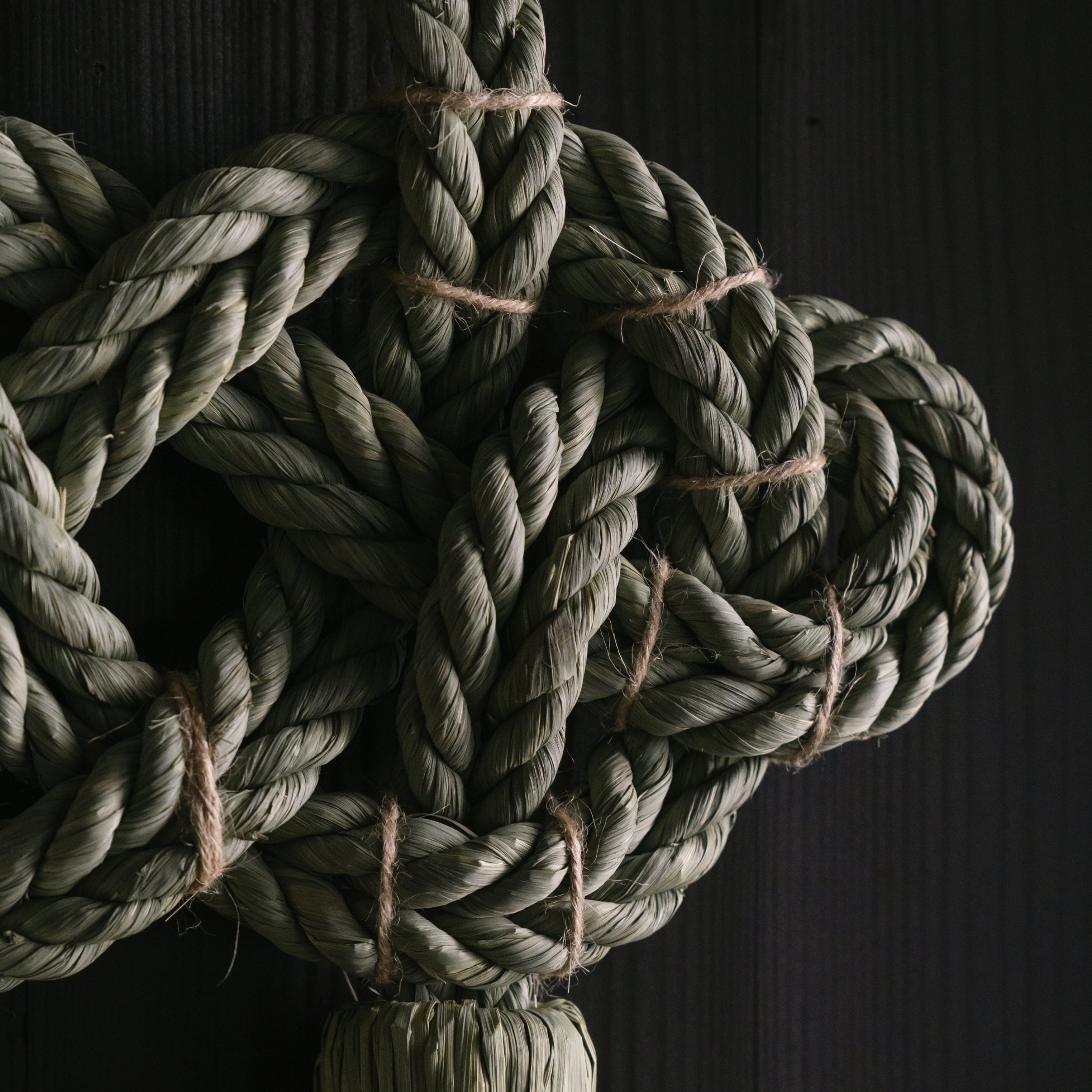 祝結び (Iwai-musubi) - Translated to “knot of celebration,” this is an amulet for the well-being of your family. Braided with right-twined and left-twined ropes to create a firm knot, it symbolizes the tie of family members and is Takubo’s signature piece.